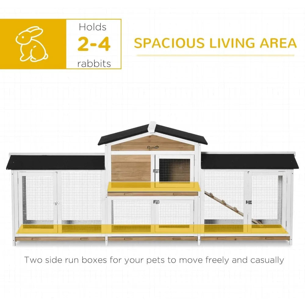 90.5" Wooden Rabbit Hutch Bunny Cage Pet Playpen House Enclosure with Double Side Run Boxes, No Leak Tray, Ramp, for Guinea Pig