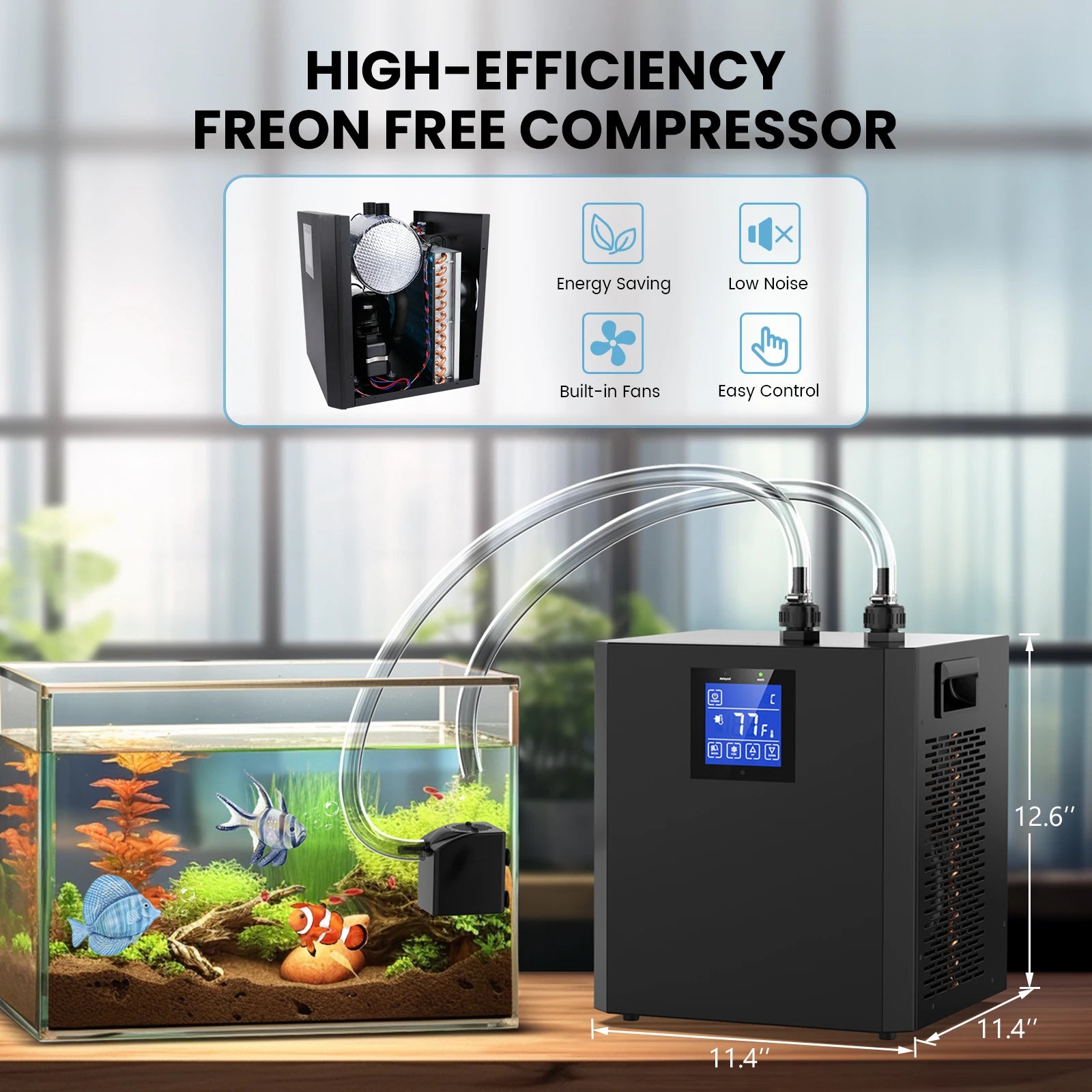 Introducing the Aquarium Chiller 79 Gallon 1/3 HP—the ultimate solution for stable, healthy water in your fish tanks and hydroponic systems. Designed to maintain precise temperatures, it safeguards ornamental fish, coral, and plant roots while simplifying daily care.
