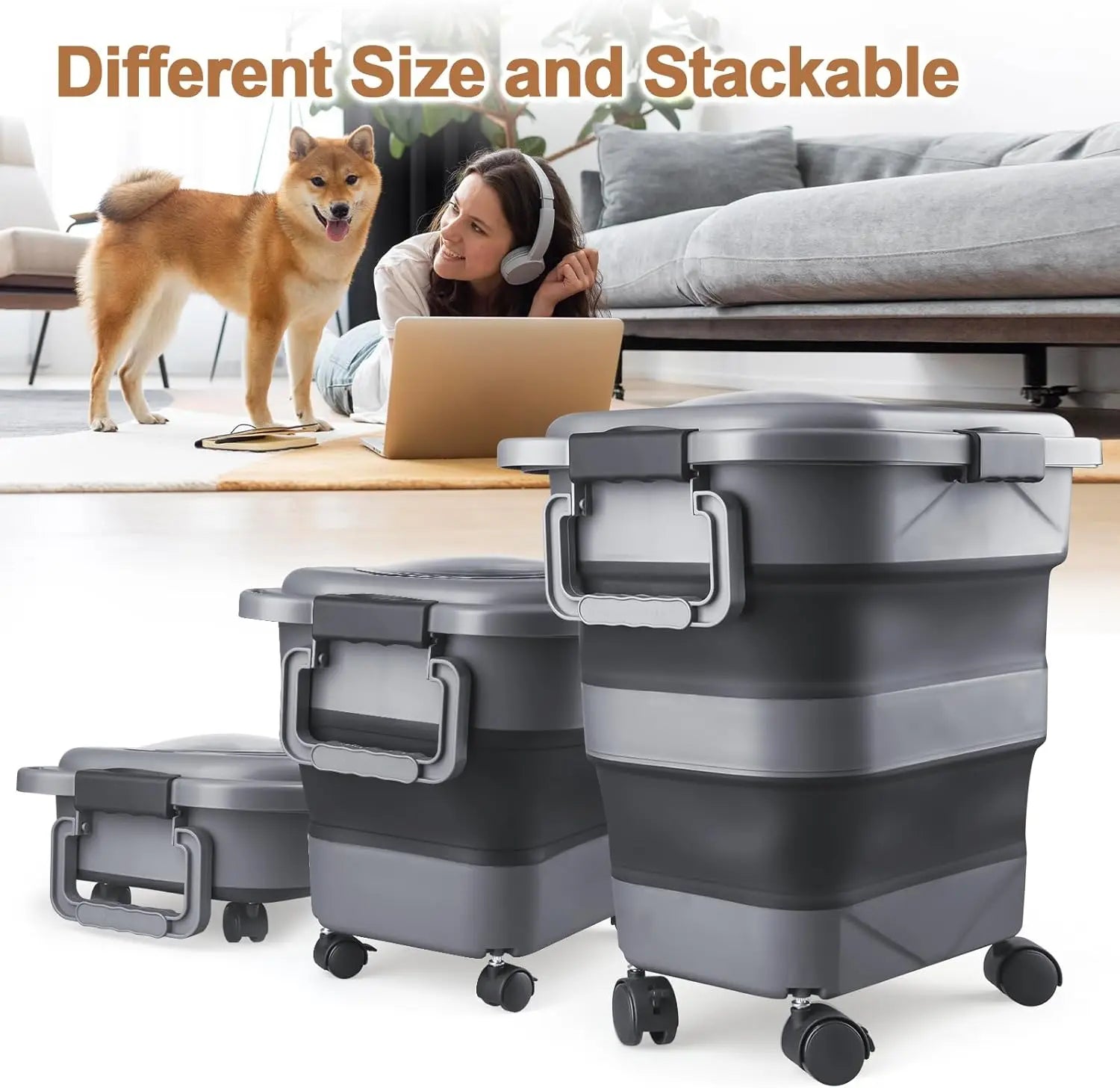 Discover the ultimate solution for pet owners with our Airtight Dog Food Storage Container with Wheels and Handle. Designed to keep your furry friend's food fresh and free from pests, this eco-friendly container boasts a stylish, functional design that sets it apart in the pet storage category. With its large handle and smooth wheels, moving this container around your home is effortless, allowing you to easily transport it wherever you need.