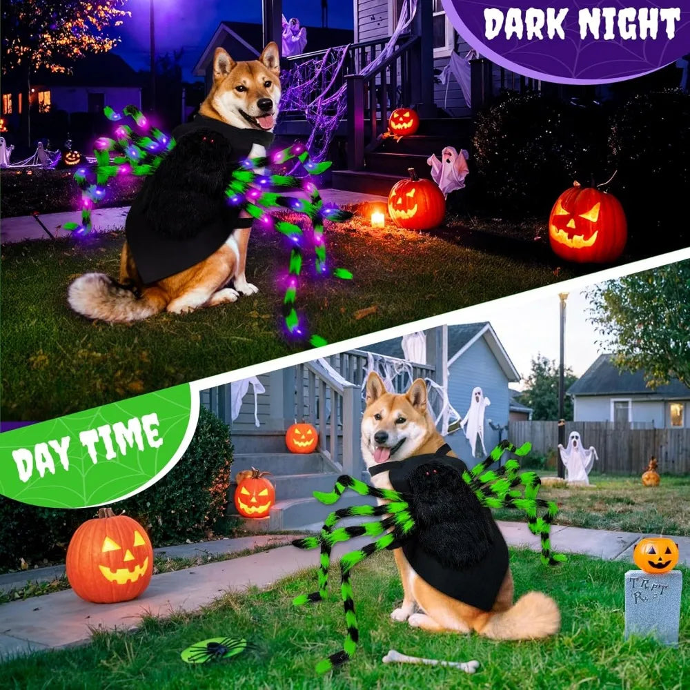 Dog Halloween Costume Large Breed, Furry Dog Spider Costume with 64 LED, Funny Halloween Dogs Costumes for Large Dogs Medium Pet