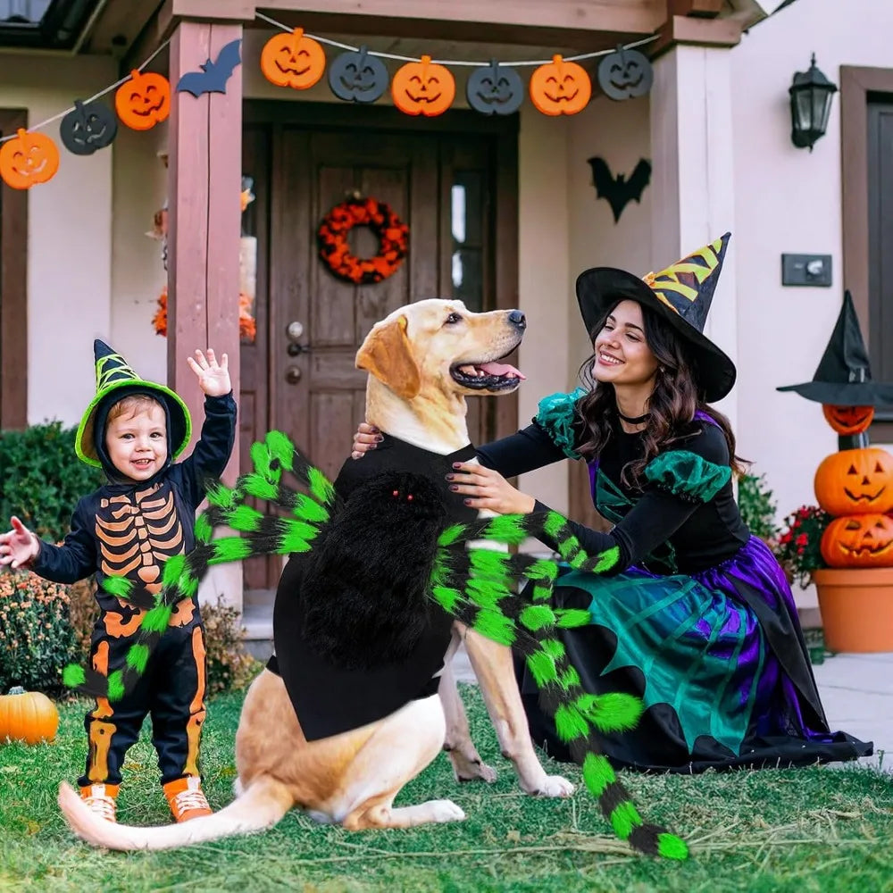 - Striking Halloween Costume: Designed specifically for dogs, this attention-grabbing large dog Halloween costumes large breed features eight vivid and vibrant furry legs. This spider-inspired outfit effortlessly transforms your dog into a giant black and green spider, complete with 8 long legs.