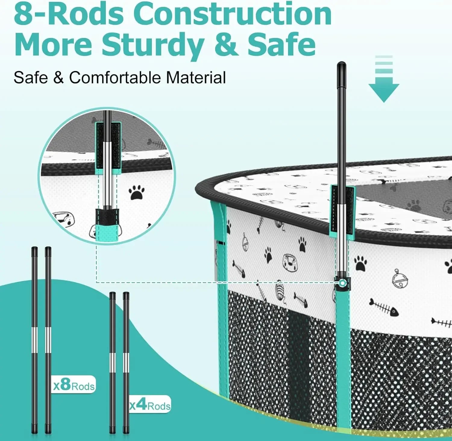 - Sturdy 8-rod frame gives you reliable stability, while breathable mesh and scratch-resistant 600D Oxford cloth stay cool, wipe-clean, and waterproof.